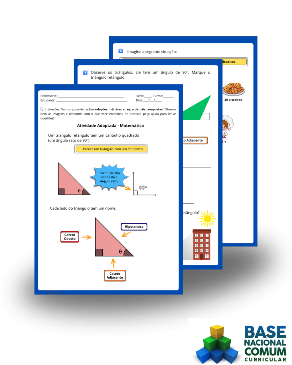 Auxiliar na compreensão das relações métricas do triângulo retângulo e da regra de três composta, usando linguagem simples e exemplos concretos para tornar acessíveis conteúdos tradicionalmente abstratos.